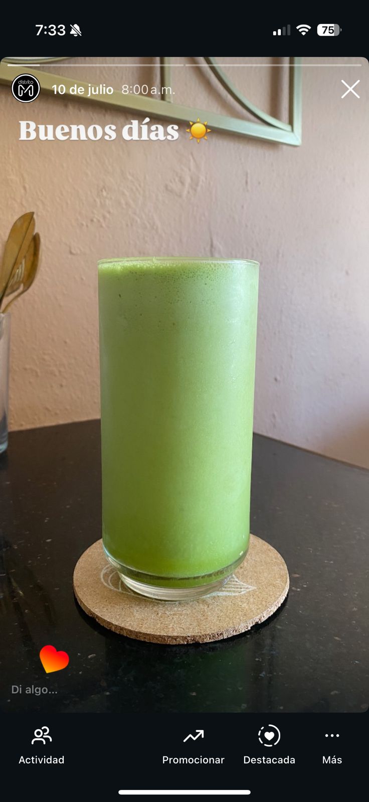 Jugo de naranja, pepino y espinaca.