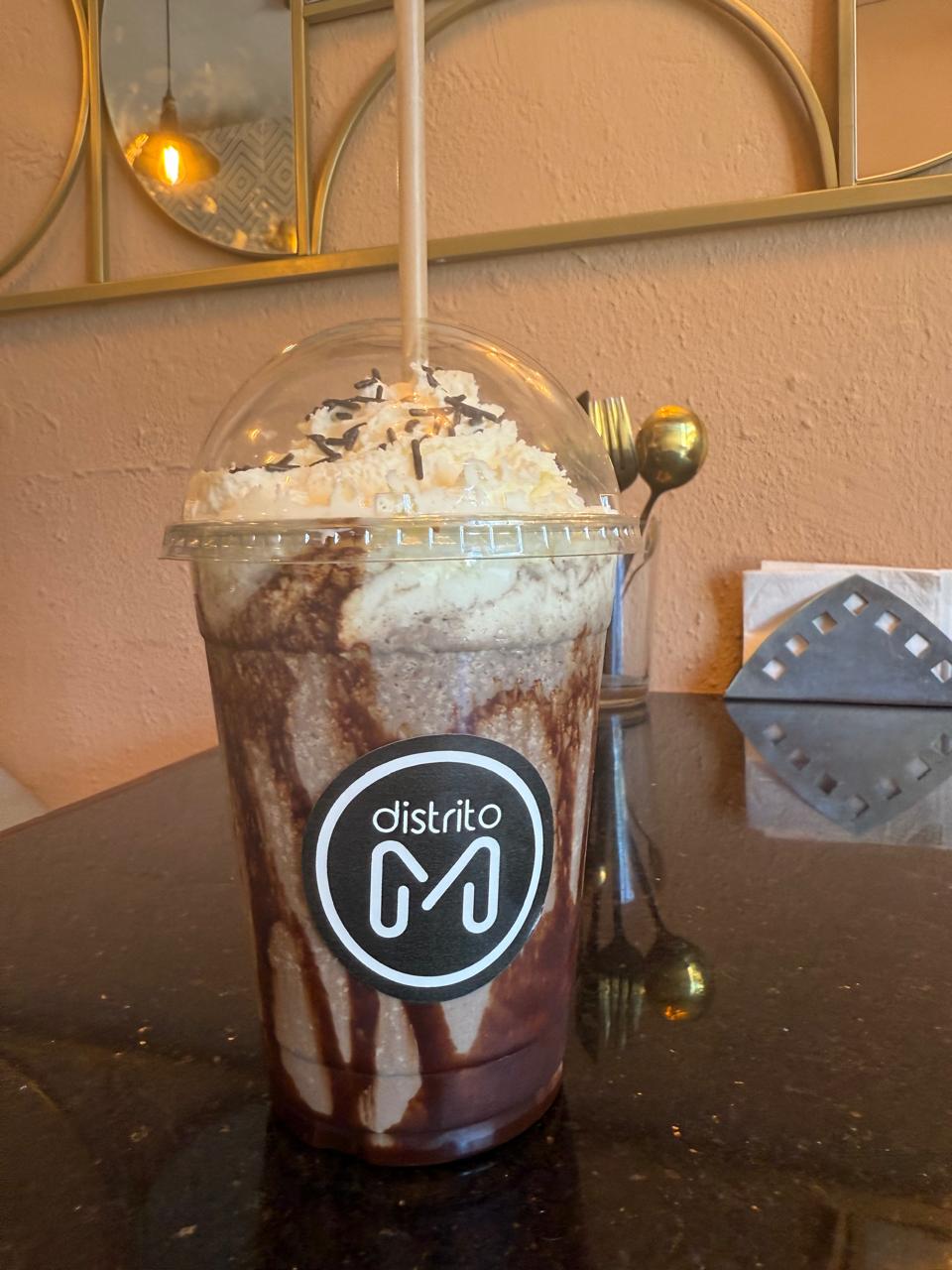 Café, hielo, leche y chocolate.